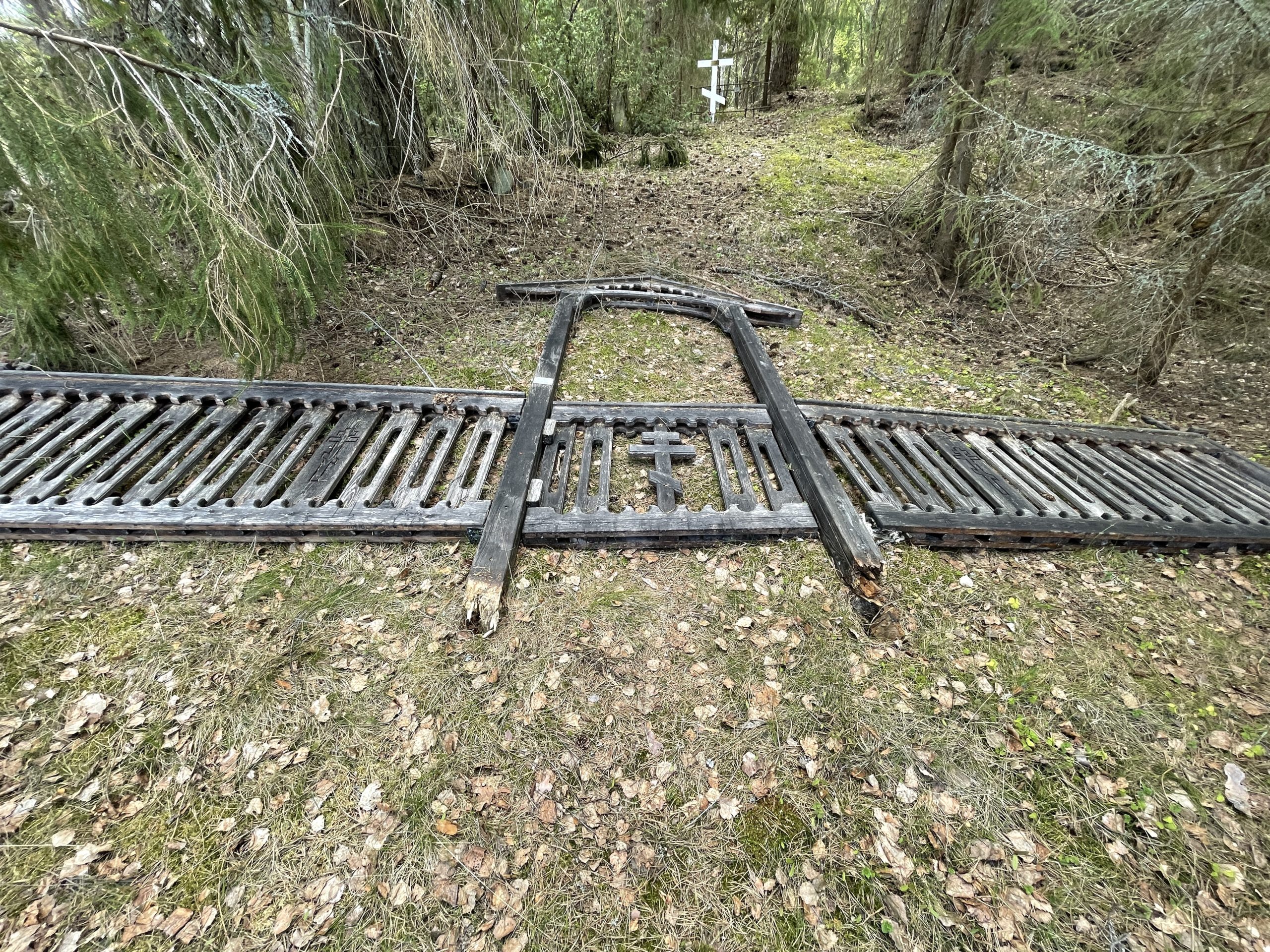 Kuvia Mantsinsaarelta toukokuulta 2022 (Velikodvorsky Vjatšeslav) 21.5.2022 | Mantsinsaari Seura ry Hautausmaan portti kaatunut.
