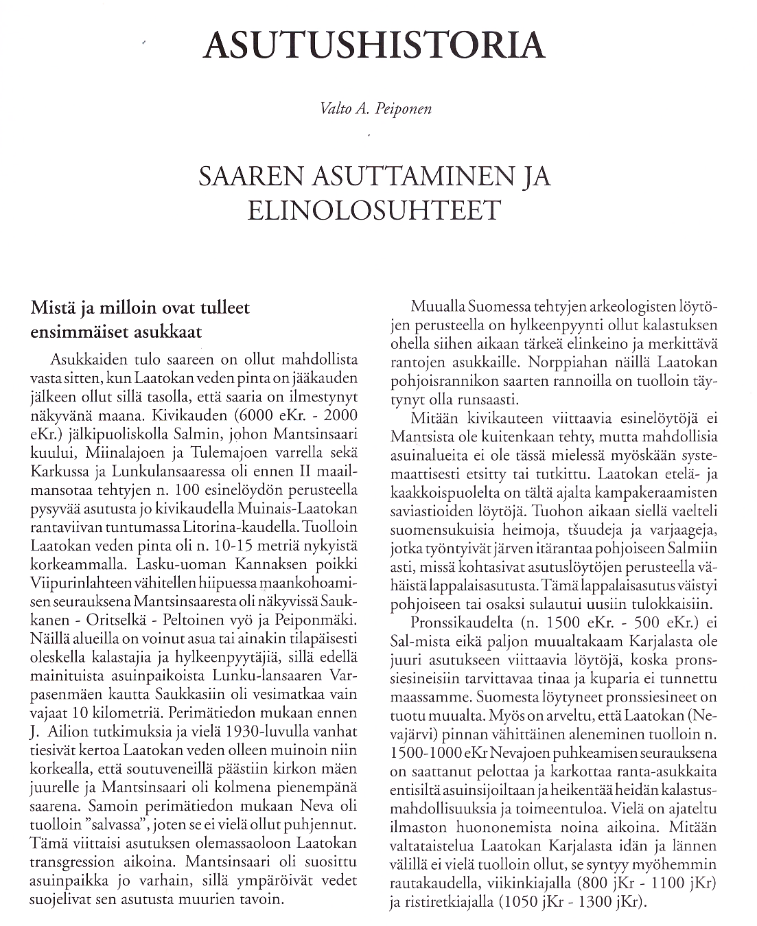 LaatokanMantsi: Asutushistoria