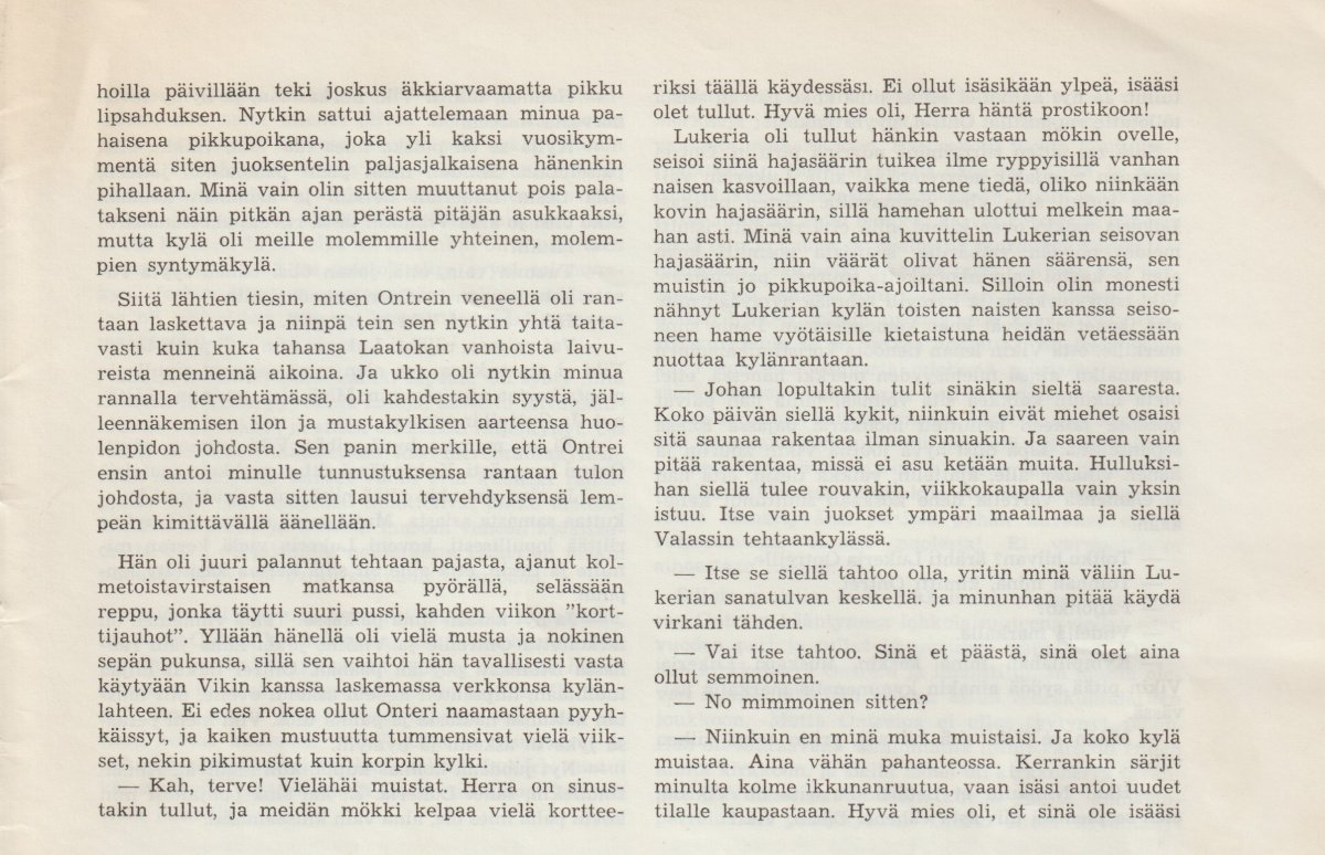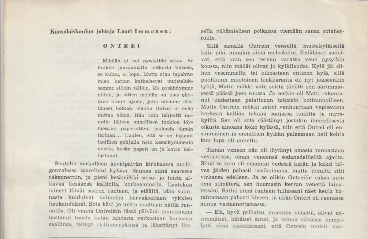 Lauri Immosen tarina Ontreista, julkaistu Nuori Karjala -lehdessä n:o 5 (Toukokuu) 1966 – tarina myös tuolla liitteissä 13.11.201822.3.2023 | Mantsinsaari Seura ry