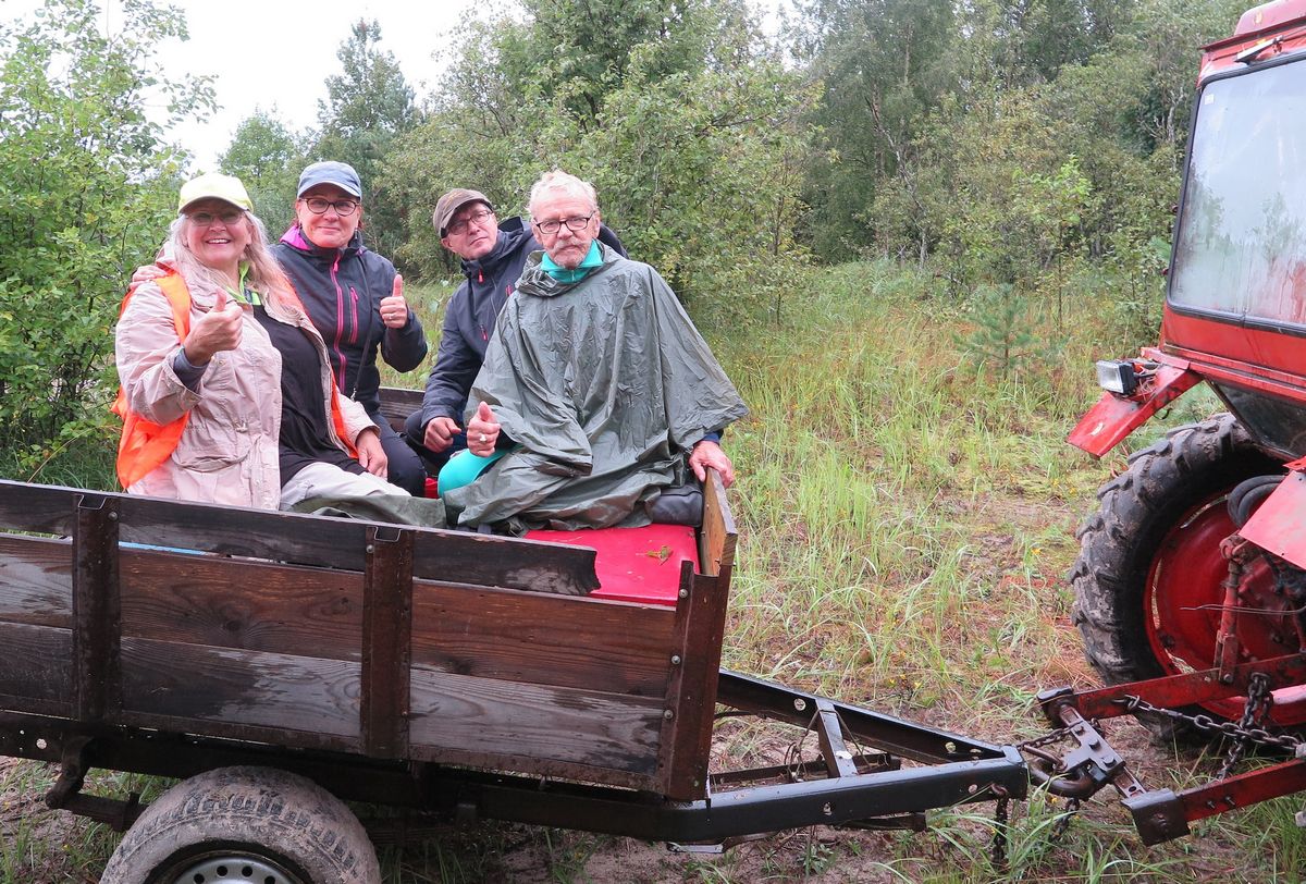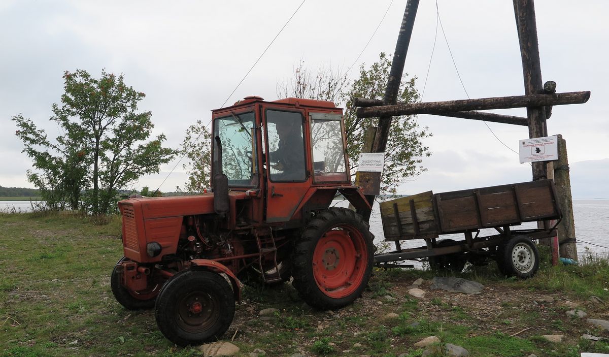 Ihan ykkösluokan päivä Mantsinsaarella onnistui täydellisesti Ivanin kyydillä. Hän on erakko Aleksein poika. Ensin ajoimme autolla Pöllän rantaan, sieltä Nikolai, Nadjan mies, kyyditsi veneellään pengersillalle ja tästä reissu alkoi Ivanin traktorin kyydissä. Välimatkat tuntuivat nyt lyhyiltä. Istuimme traktorin peräkärryn lavalla etsien sukulaistalojen paikkoja ja kantarelleja, jotka Ivan juoksi meille poimimaan! Ilman väsyneitä jalkoja köröttelimme ja nauroimme makeasti menoamme.