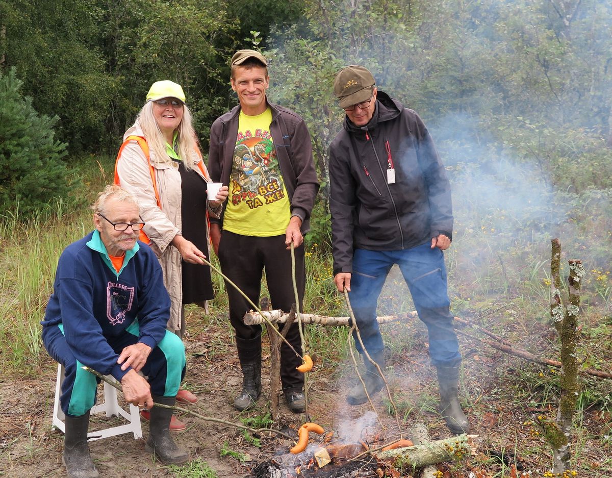 Ensin ajoimme Oritselkään, sieltä tsasounan ohi laskeuduimme Longoinlahdelle, jossa maistuivat nuotiomakkarat termospullokahvin kera. Siellä ensimmäiset hirvikärpäset iskivät iholle. Longoinlahden hiekkaan Ivan piirsi norpan ja osoitti Laatokkaa, jossa norpat olivat nousseet kiville lepäämään. Elekielellä hän kertoi lisää ”jotakin”. – ja totta tosiaan, näimme, mitä vanhempamme olivat kertoneet. Laatokan horisontissa siinsi Valamon pääkirkon torni.